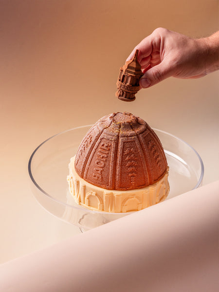 Pour les fêtes, Bachir présente une nouvelle création de la collection "Sous le ciel de Paris". Le dôme des Invalides s'illustre dans une bûche glacée qui met en valeur des saveurs précieuses et emblématiques de notre maison.