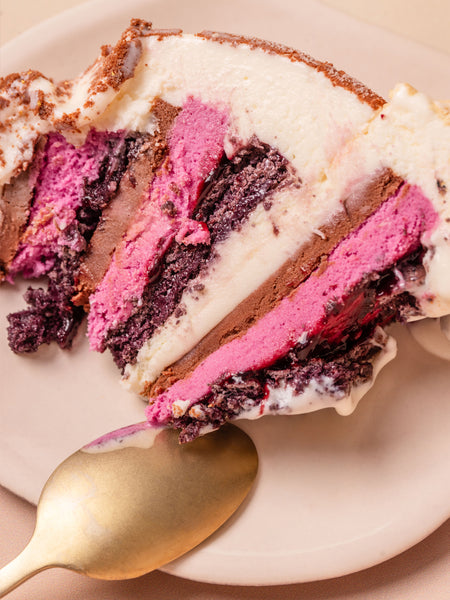 notre glace mûre, élaborée à partir de mûre cultivées à plus de 1 000 m d'altittude, sur les pentes du Mézenc, accompagnée d'une compotée de mûre bio pour une touche fruitée et acidulée.