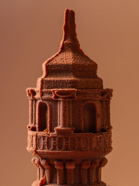 L'ensemble est rehaussé d'un flocage chocolat et de paillettes d'or, rappelant l'éclat du célèbre monument parisien.